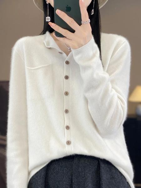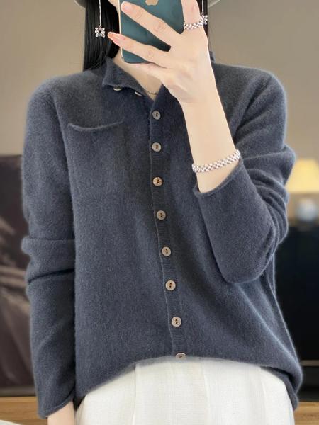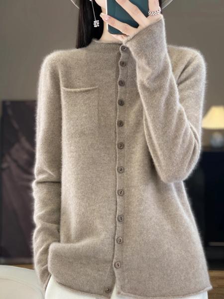女性のセーターカーディガン秋冬長袖 100% メリノウールニットウェアバインディングポケットカシミヤ固体女性服トップ