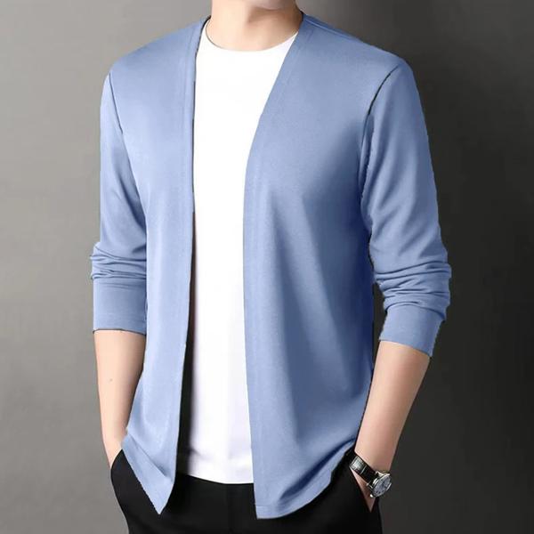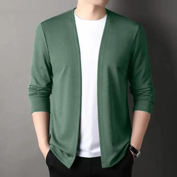 新しいスリムフィットカーディガン男性用、薄い春と秋のアウターウェア、長袖カジュアルトレンディ多用途ピュアカラースリムフィット秋