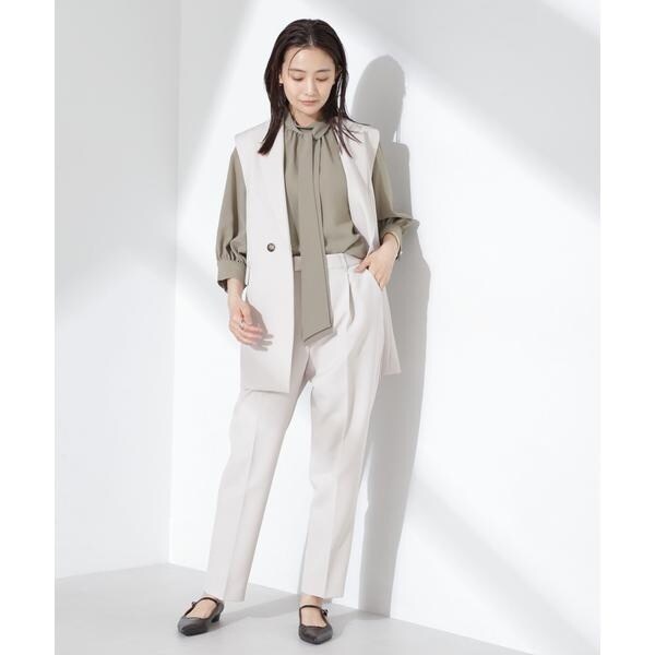 ・オフィス映えするボウタイ付きのとろみブラウス