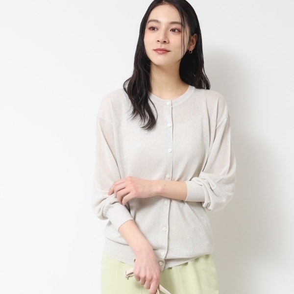 表面に細かなラメ感のあるミドル丈カーディガン。