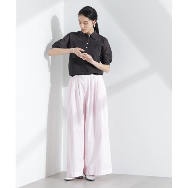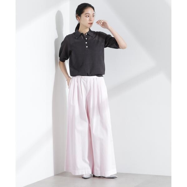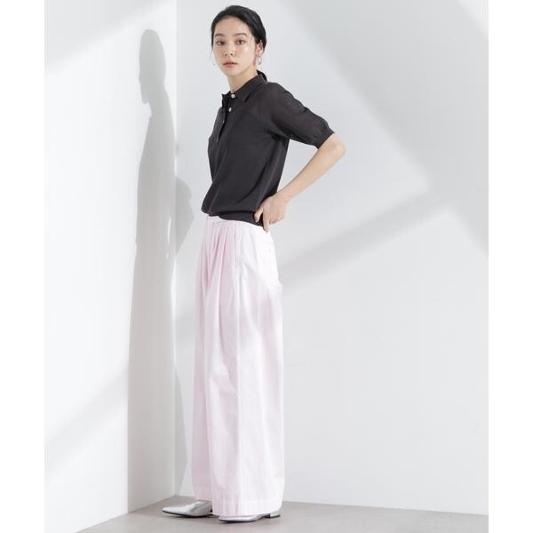 ・フロントに複数のタックを入れたっぷり分量を出したワイドパンツ