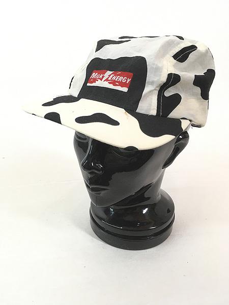 雑貨 古着 90s MILK ENERGY 企業 ロゴ プリント 牛柄 ナイロン キャップ 帽子 古着