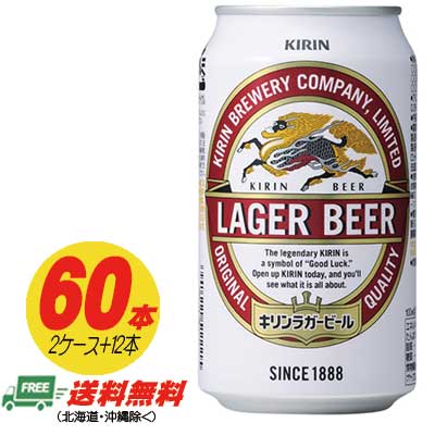 キリン ラガービール 生 350ml 60本(2ケース+12本) 送料無料 ビール類 缶ビール N