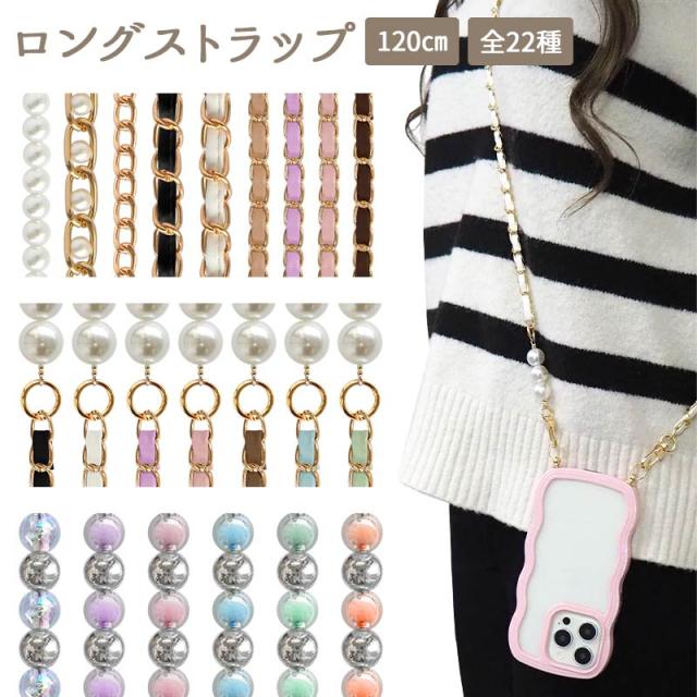 ストラップ 首掛け ショルダー 単品【ロングストラップ 120cm】スマホショルダー 肩掛け 斜めがけ ショルダータイプ ストラップ パール チェーン ビーズ レザー スマホ iPhoneケース などに ギフト メール便送料無料