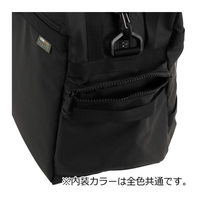 本体生地はINVISTA社に依頼し開発したオリジナルマテリアルCORDURA(R) POLYCARBONATEを使用しています。ベース生地には摩擦、引裂きに強い耐久性に優れたCORDURA(R)305Dポリエステルオックスの表面に通常のPUコーティングに比べ耐摩擦性、耐摩耗性、耐光性、加水分解による劣化スピードが遅い耐久性に優れたポリカーボネイト加工を施した防水性、撥水性に優れた素材を使用しております。