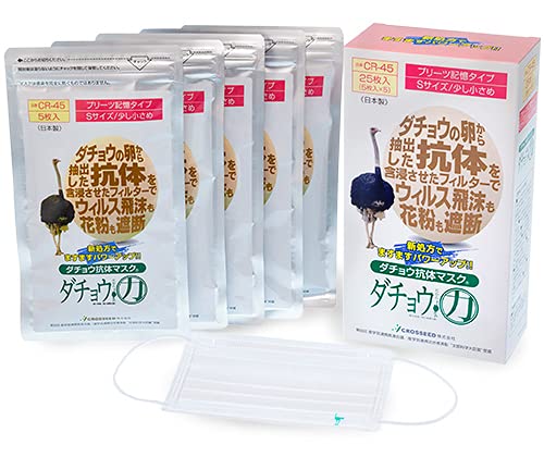 CROSSEED(クロシード) ダチョウ抗体マスク プリーツ記憶タイプ Sサイズ (女性用) 25枚入