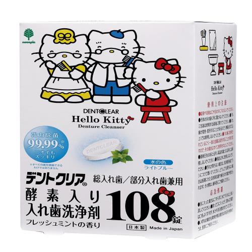 紀陽除虫菊 ハローキティ デントクリア(108錠入り) 入れ歯洗浄剤 [部分入れ歯/総入れ歯兼用] フレッシュミントの香り 日本製 [酵素洗浄/ニオイ消臭]