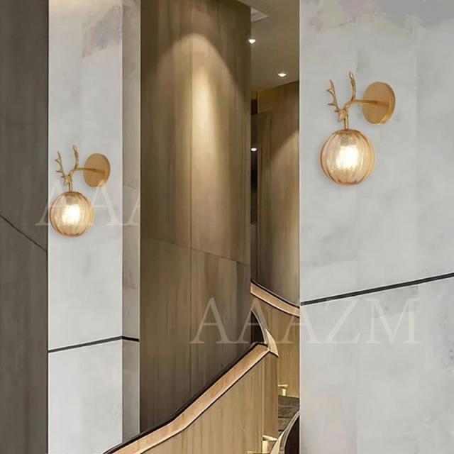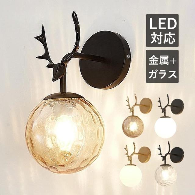 ブラケットライト おしゃれ 北欧 LED対応 壁付け 照明器具 ガラス 丸型 鹿の角 和風 ウォールランプ 洗面所 階段 玄関 壁掛け照明 和室 洋室 ベッドサイドランプ