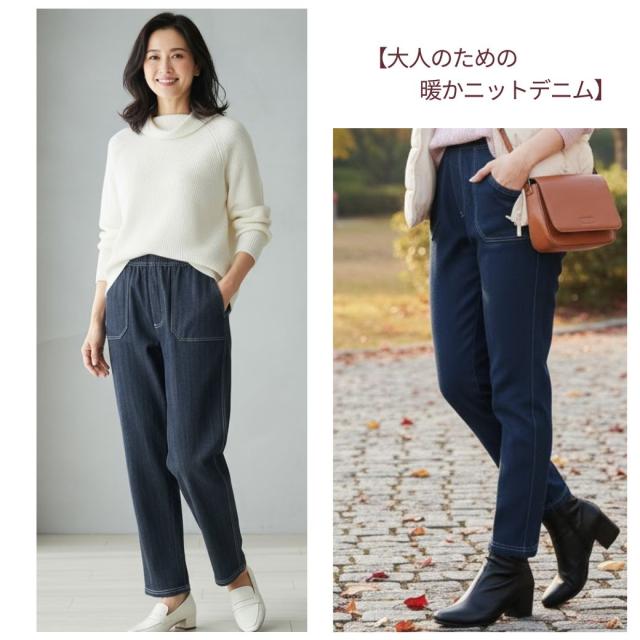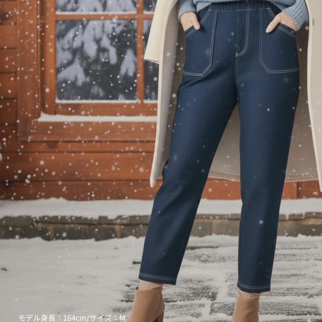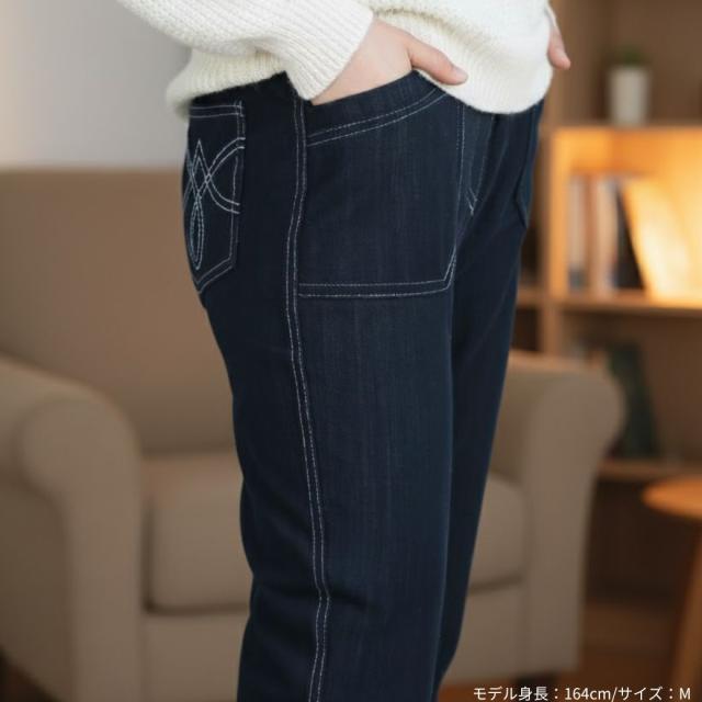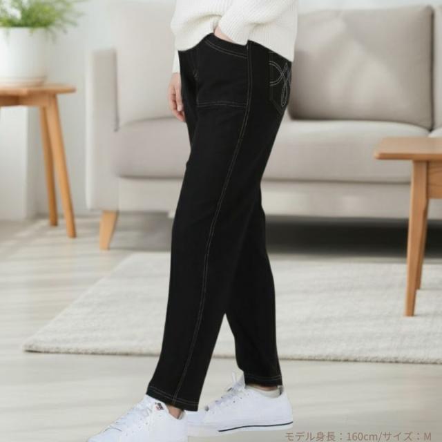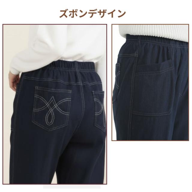 シニアファッション パンツ レディース ズボン おばあちゃん 80代 70代 柔らか ウエストゴム 人気 総ゴム デニム風 股下短め 丈短め ストレッチ 敬老の日