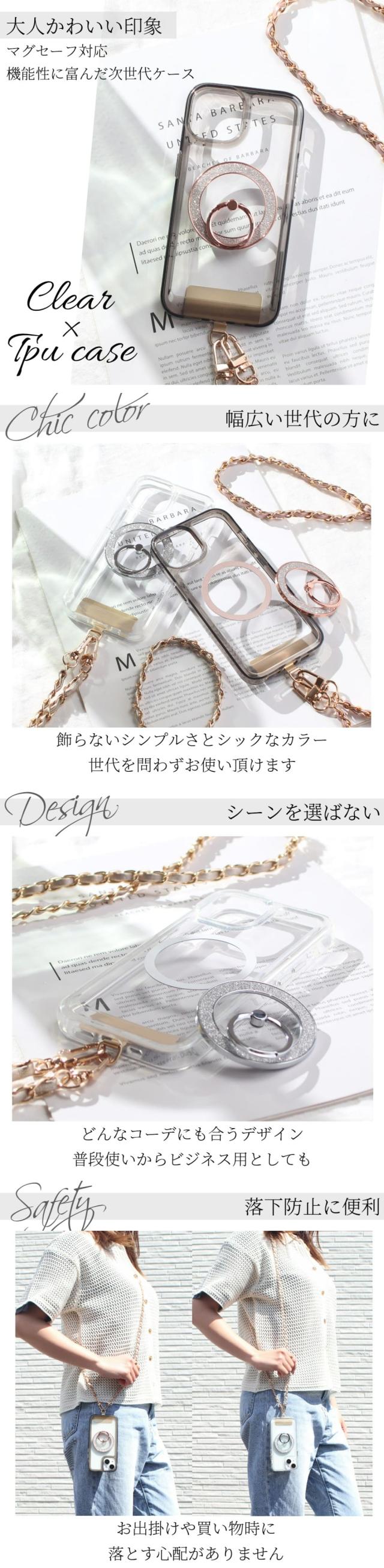 iphone ケース クリア リング付き iphone16 iphone15 iphone14 13 12 mini チェーン ストラップ magsafe マグセーフ マグネット アイフォン 16 15 14 SE 11 スマホケース 16pro 15pro 14pro 肩掛け ストラップ付き リング スタンド ショルダー 13mini se3 se2 送料無料