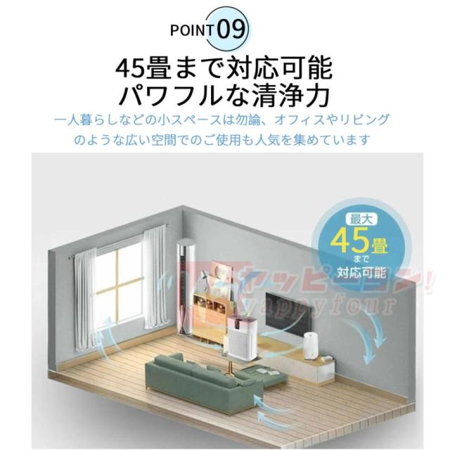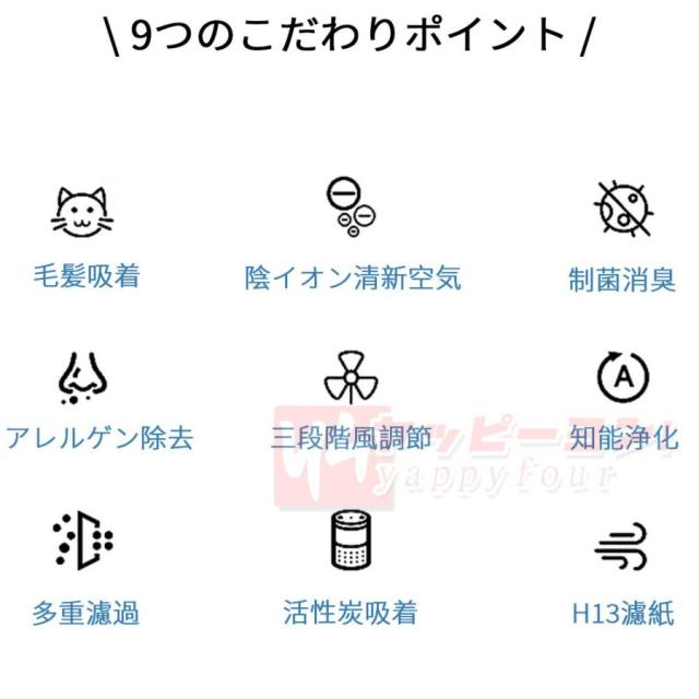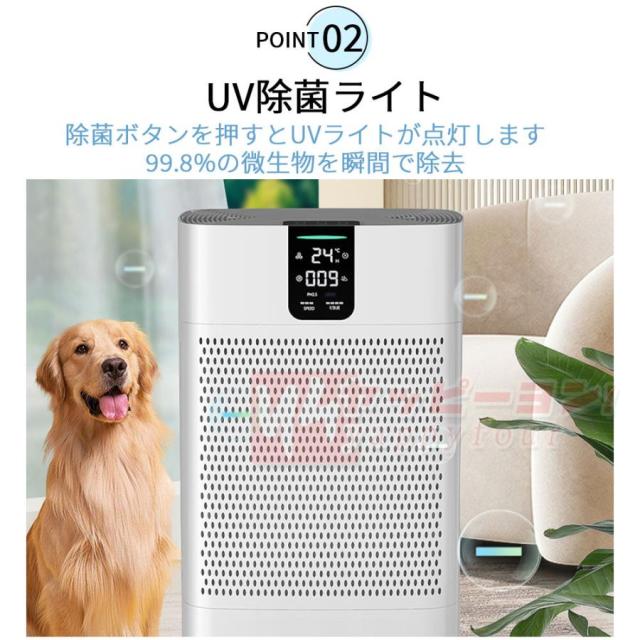 マイナスイオン放出 紫外線で空気に浮遊する菌を消滅して、マイナスイオンは花粉、ほこりなどを除去します。 より衛生的な環境を作り出す、お年寄り、お子様、体調の弱い人をウイルス、花粉などから守ってくれます。 【三段階の風量調節過熱保護<】