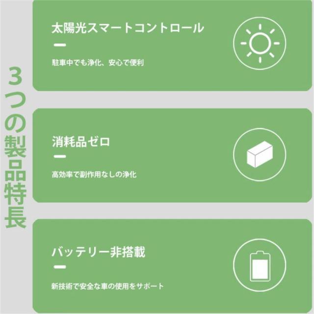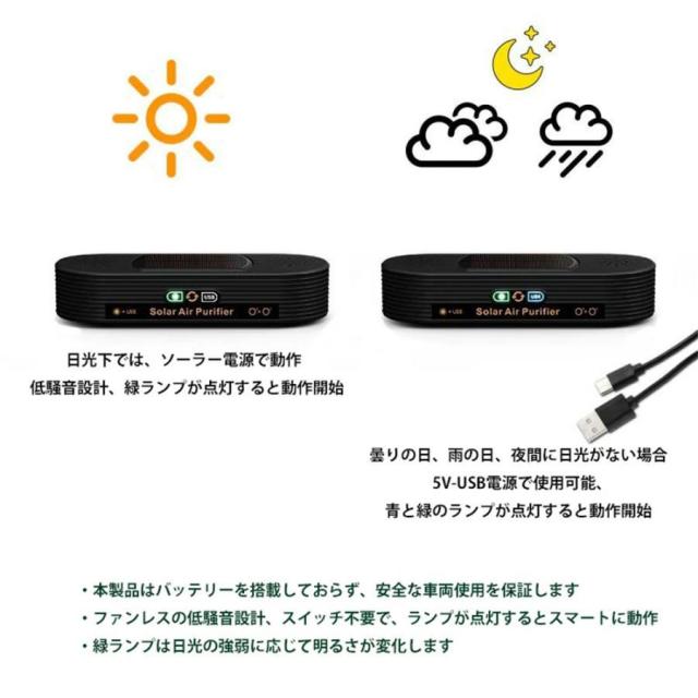 ホルムアルデヒドと臭気を除去: 高度なマイナスイオンと浄化により、広範囲の浮遊汚染物質に取り組みます。 USB/ソーラーパワー:USBおよびソーラー充電による電源オプション。