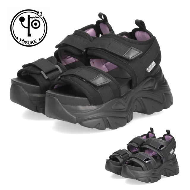 ヨースケ 厚底サンダル レディース 4460022 YOSUKE 靴 スニーカー 黒 ブラック 幅広 3E ベルクロ