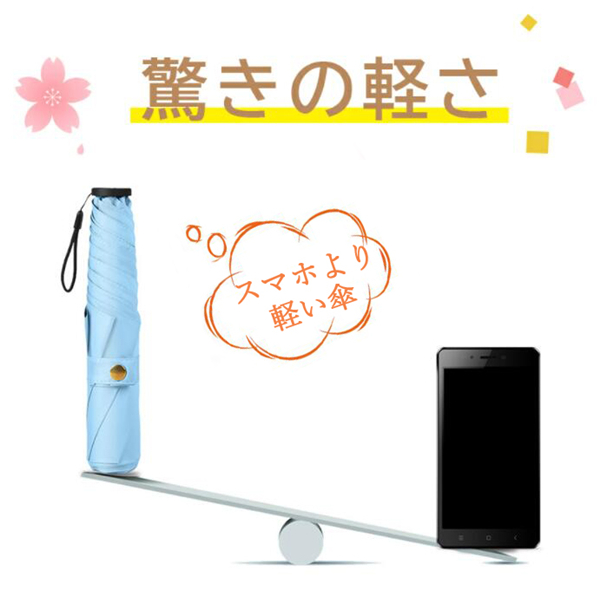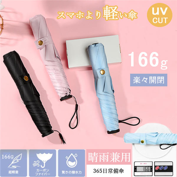 高級傘にしか使わないカーボンファイバーを使用しました!親骨50、直径88cmの大きさなのに重さはわずか166gです!突然の雨や思わぬ日射しに大活躍してくれます。スマホの1/3ぐらいの重さなので、毎日持ち歩いても負担かかりません。持っていることを忘れてしますほどの重さです!