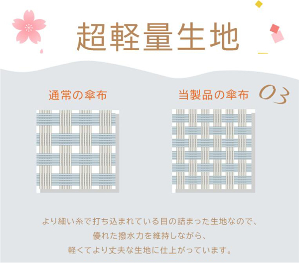 | 素材 | 【素材】高密度のNC布 【親骨】アルミニウム合金製 【傘骨】ガラス繊維&スチール製 |