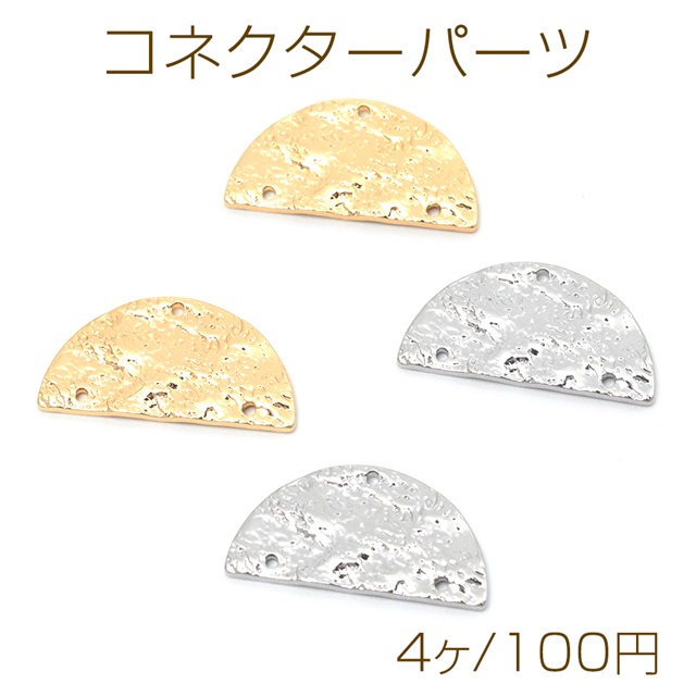 コネクターパーツ 銅製 凹凸加工 半円型 2連 半月 かまぼこ メタルパーツ 3穴 約11×22mm(4ヶ)