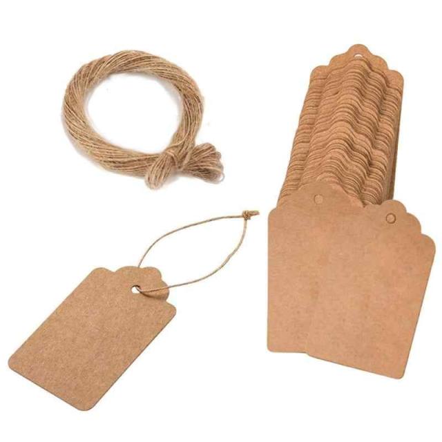 ESJNNK クラフトタグ 値札 100枚 長方形 荷札 糸付き下げ札 無料の麻糸付き 価格タグ ギフトラベル 菓子屋 パーティー 結婚式 装飾 撮影用 (5cm*3cm)