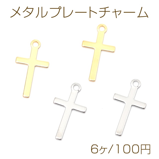 メタルプレートチャーム 銅製 クロス 十字架 メタルチャーム メタルパーツ 1カン付き 約7×13mm(6ヶ)