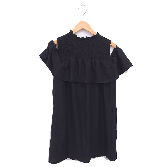 【中古】ページボーイ PAGE BOY alicia ワンピース ひざ丈 オフショルダー シャーリング プルオーバー 半袖 F 黒
