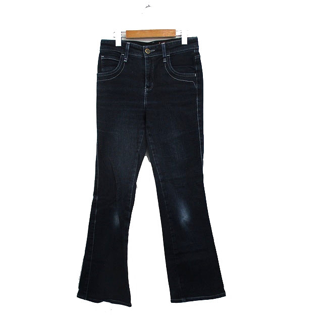 【中古】サムシング something デニム ジーンズ フレア ウォッシュ加工 29 ×32 ネイビー 紺 /KT1 レディース