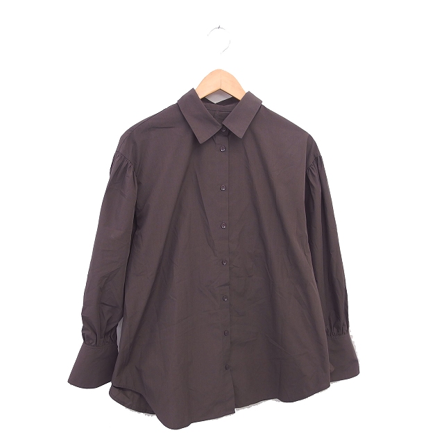 【中古】ビス ViS チュニック シャツワンピ ステンカラー ギャザー 無地 シンプル 薄手 長袖 F 茶 ブラウン /TT