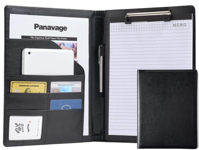Panavage バインダー A4 クリップボード PU クリップ ファイル 二つ折り 多機能 ペンホルダー ポケット付き 名刺入れ メモ帳付き 黒