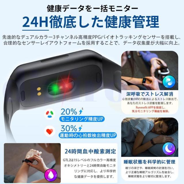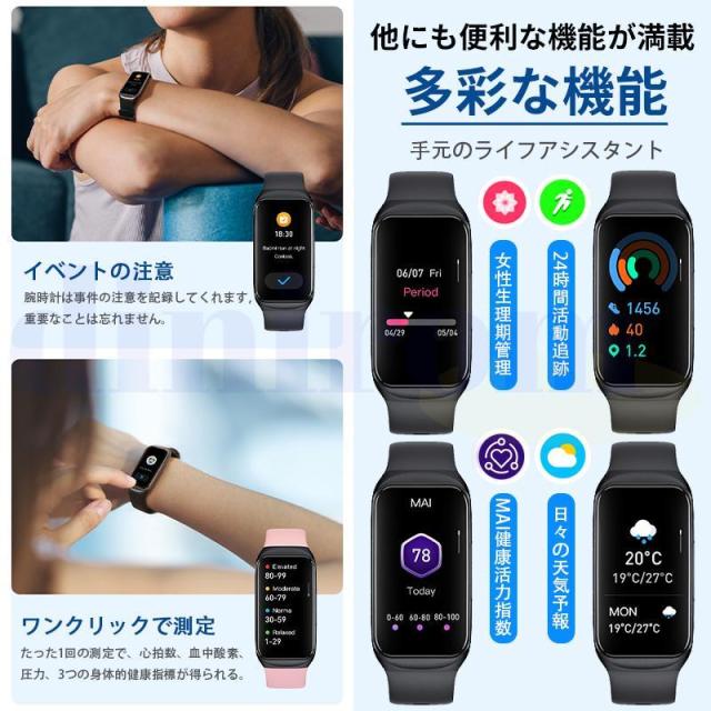 血圧、血中酸素、心拍数値などの測定機能搭載、ご自分に関わる機能搭載されており、常に気を配り、体調をより詳しく把握することができます。睡眠時間や睡眠の質を正確に計測できる、意識的にスケジュールや健康管理を改善します。また、着信通知などの通知は、全部バイブレーションで通知されます。一切の大事な連絡を絶対に見逃しません。活動量計、歩数計、目覚まし時計、音楽制御/再生など実用な機能が備えます。