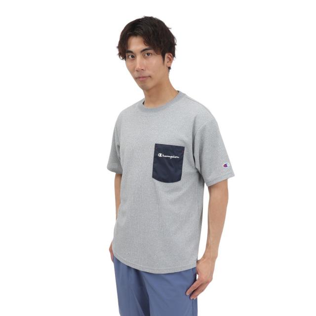 ※掲載の価格・製品のパッケージ・デザイン・仕様について、予告なく変更することがあります。あらかじめご了承ください。2025年春夏モデル 2025ssmodel チャンピオン Champion スーパースポーツゼビオ ゼビオ Super Sports XEBIO スポーツカットソー 半袖Tシャツ Men’s Mens メンズ めんず 男性 スポーツアパレル スポーツウェア トップス 吸汗速乾 遮熱 UVカット 胸ポケット付き ラウンドカット ライトグレー cuansew202602【C3-BS325 070】【8809698】