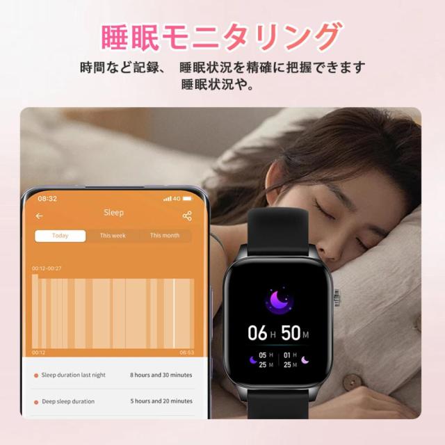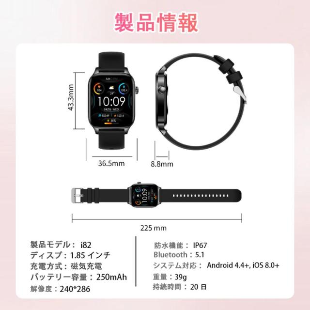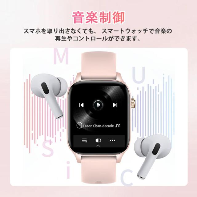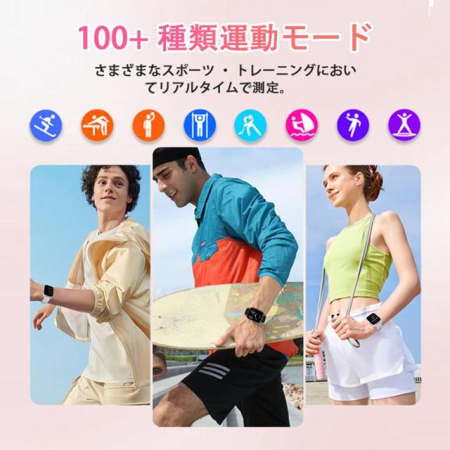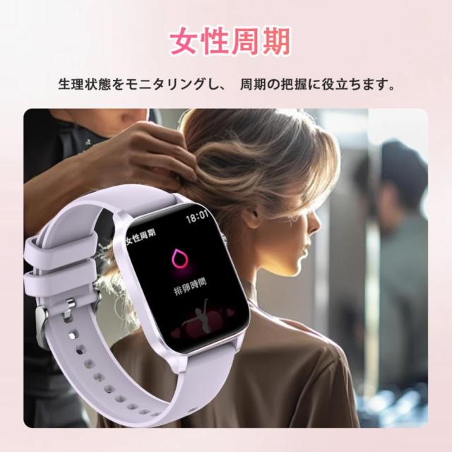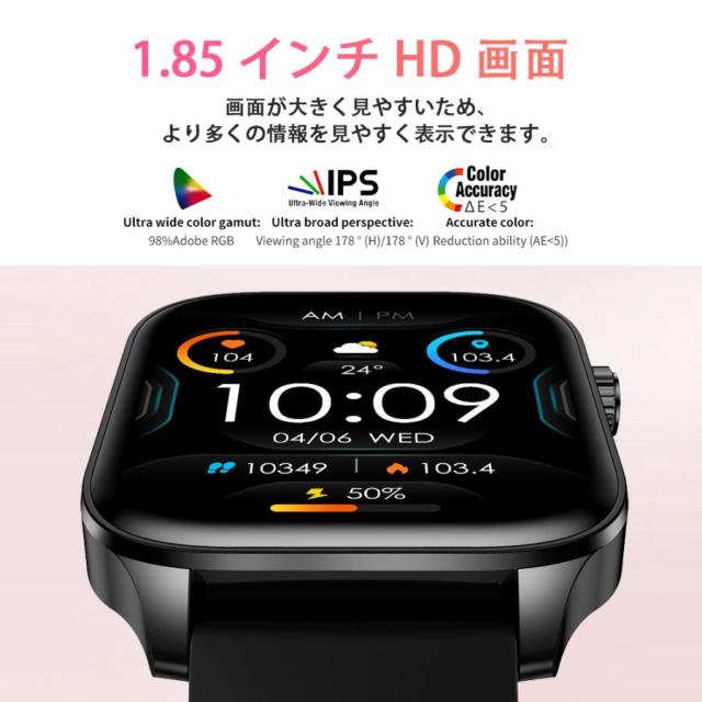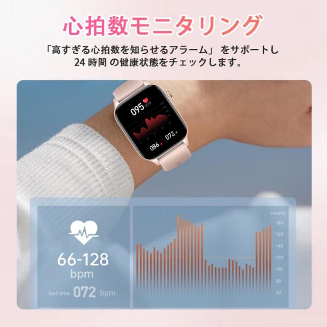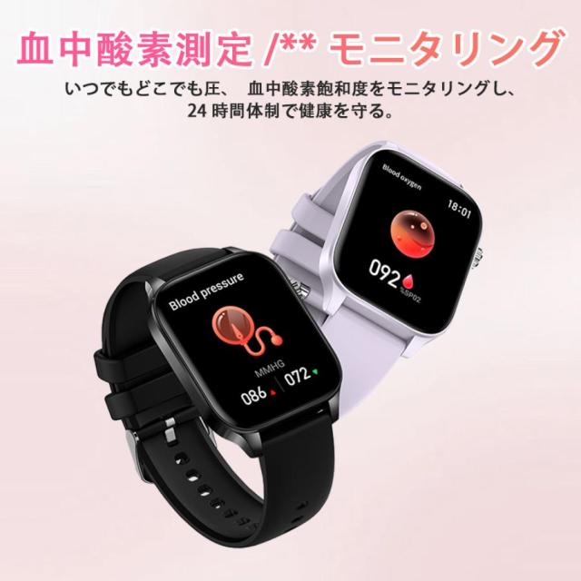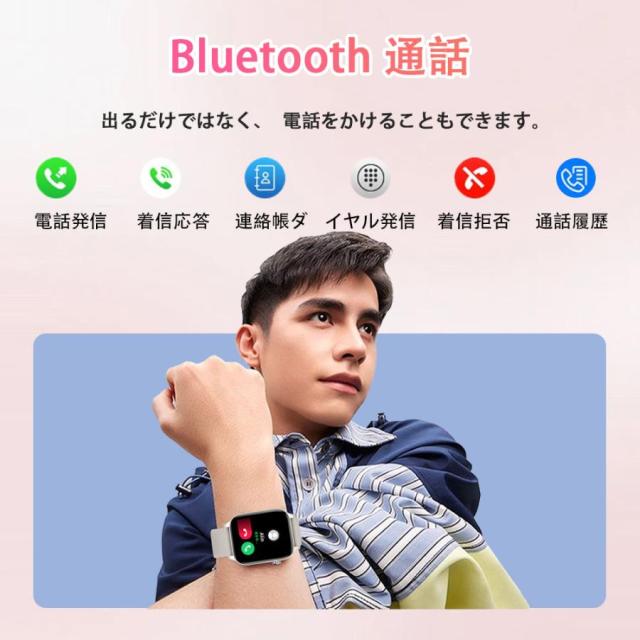 スマートウォッチ 血圧 1.85inchスマートウォッチレディース/メンズ、Bluetooth5.1通話機能日本製センサー搭載マカロンカラー心拍数モニター