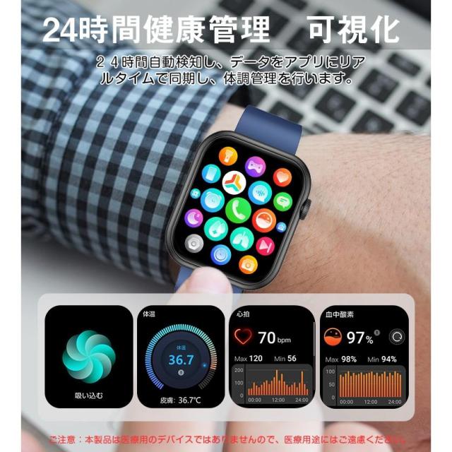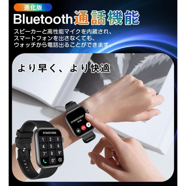 スマートウォッチ スマホウォッチ スマート時計 通話機能 血中酸素 万歩計 腕時計 1.96インチ IP67防水 心拍数 日本語