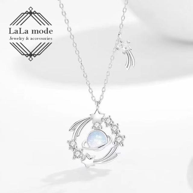 ネックレス レディース 宇宙 星 スター 流星 流れ星 モチーフ CZダイヤモンド AAAA キュービック ジルコニア シルバー925 プラチナ コーティング仕上げ アレルギー対応 プレゼント 送料無料 プレゼント 人気 華奢 かわいい シンプル アクセサリー ジュエリー