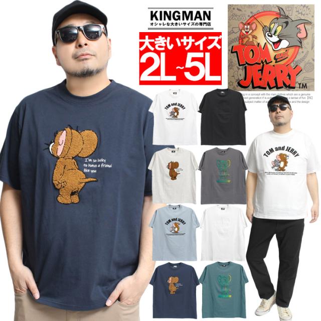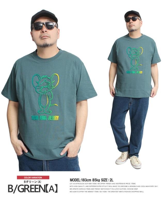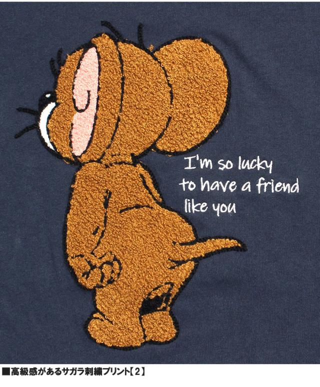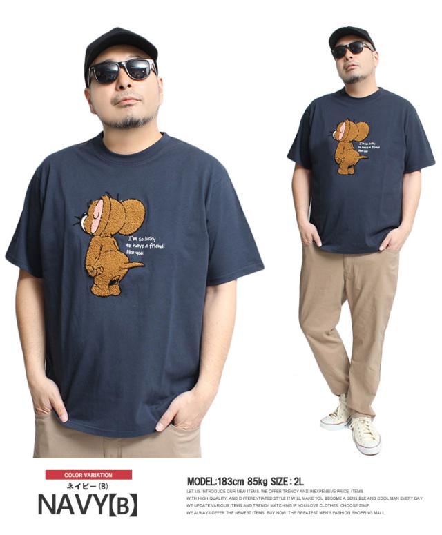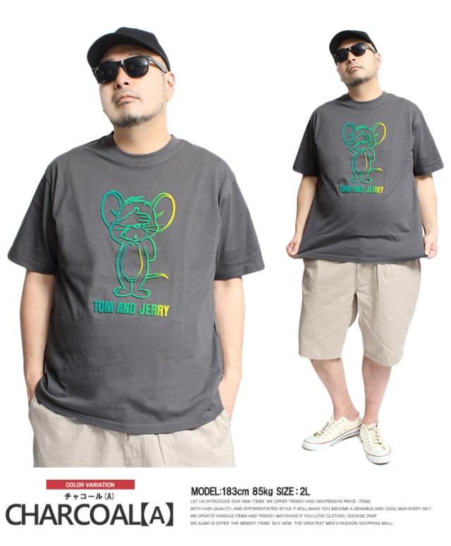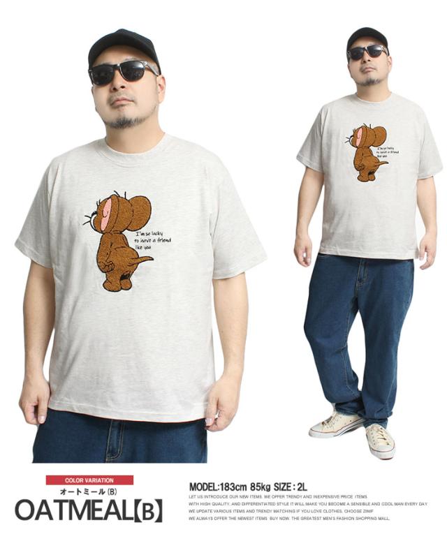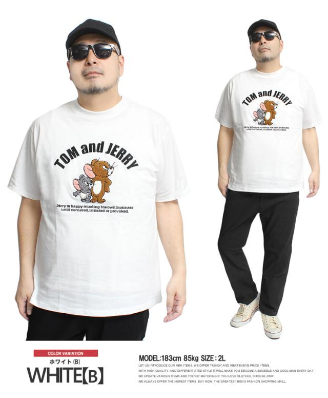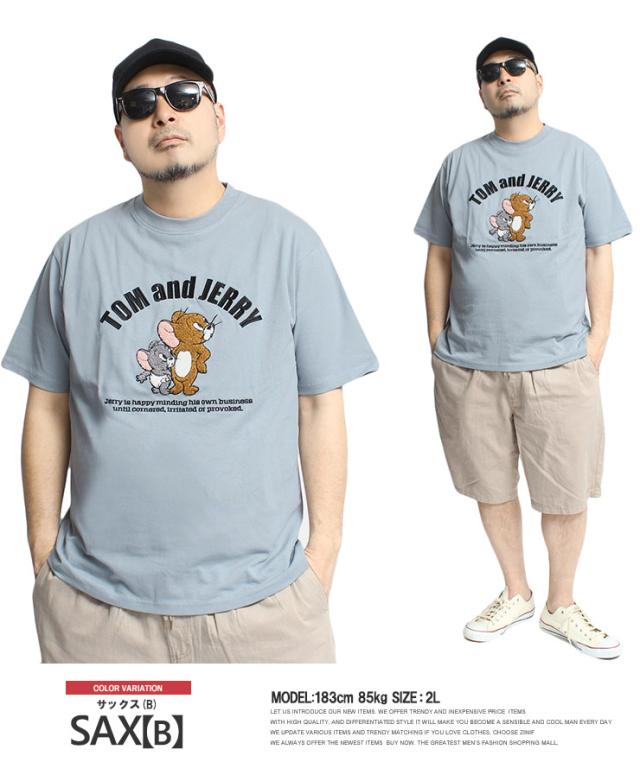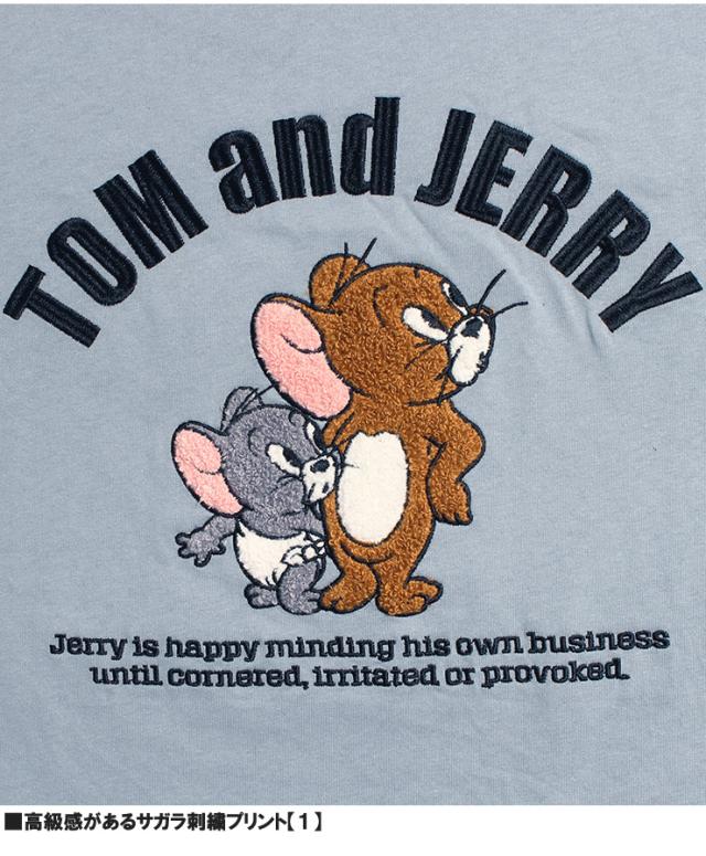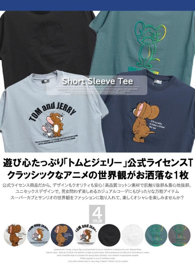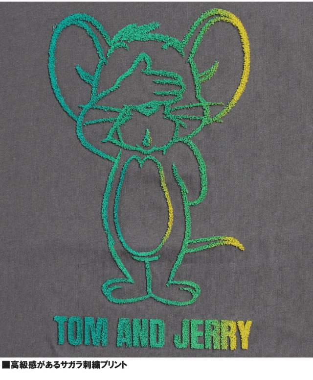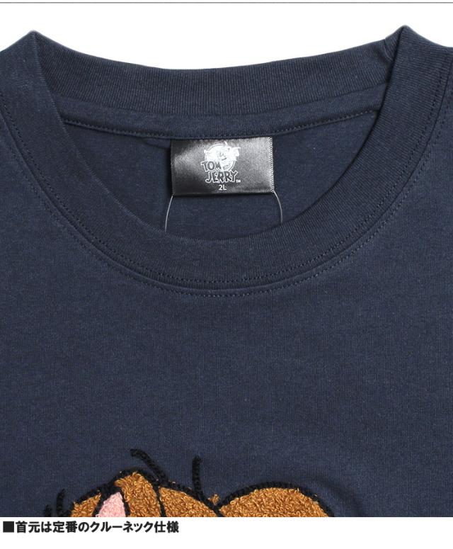 【メール便で送料無料】 TOM AND JERRY(トムとジェリー) 半袖 Tシャツ メンズ 大きいサイズ エンボス ブラシ サガラ 刺繍 プリント クルーネック カットソー キャラクター アニメ グッズ かわいい トップス プリントTシャツ ユニセックス ワークマン プラス