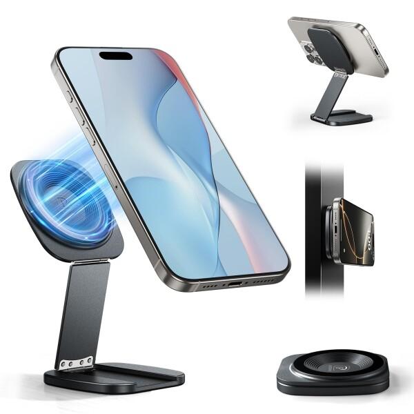 nediea スマホスタンド 磁力は強力 マグネット 卓上用 スマホホルダー MagSafe対応 折りたたみ式 携帯スタンド 両面マグネット マグネットスタンド アルミニウム合金製 耐久 多角度調整 薄