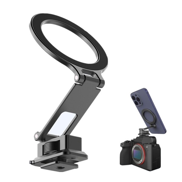LICHIFIT カメラ用スマホホルダー Magsafe対応 アルミ 角度調整可能 コールドシュー、1/4ネジ穴付き スマホ固定 ブラケット マグネットリング付 カメラや三脚、自撮り棒などに接続可能 一眼