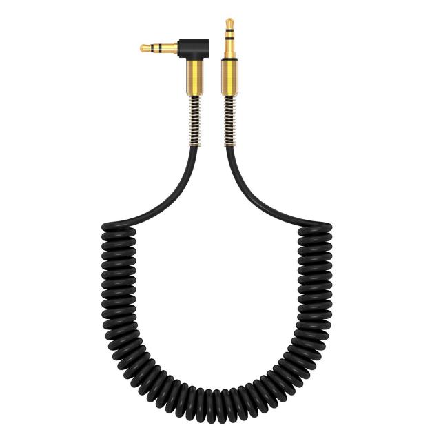 ◆商品名:AXYO オーディオケーブル 3.5mm AUXケーブル 片側 L型 カールコード式 ステレオミニプラグ 約1m 長く伸びるカールケーブル ヘッドホン/i
