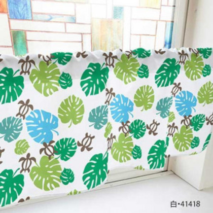 カフェカーテン モンステラとウミガメ 800×450mm 白・41418 |b03
