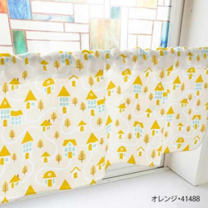 カフェカーテン 家 800×450mm オレンジ・41488 |b03