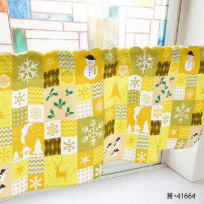 カフェカーテン クリスマス柄 パッチワーク 800×450mm 黄・41664 |b03