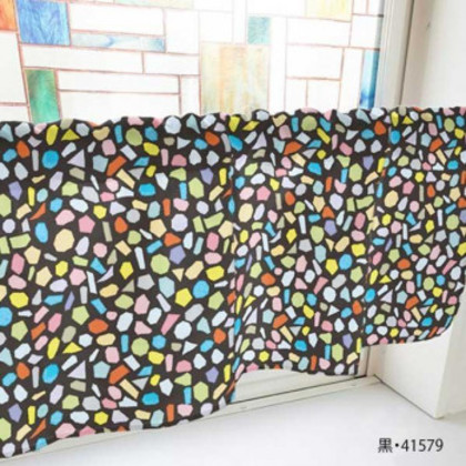 商品詳細:様々な色や形のタイルがたくさん描かれているおしゃれなカフェカーテンです。 生産国:日本 素材・材質:ポンジ 商品サイズ:W1000×H450mm