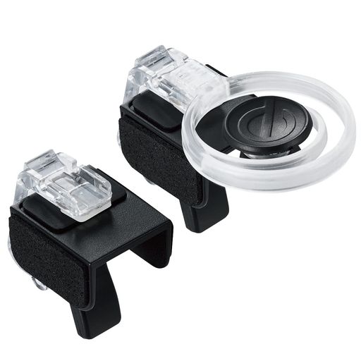 スマートフォン用アクション系ゲームの移動操作アイコンの操作性を向上させるショートストロークタイプのコントローラとフィンガーレストのセット品です。