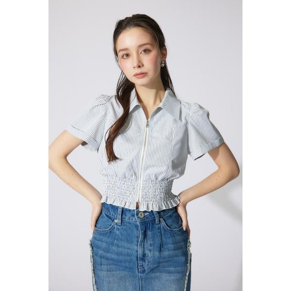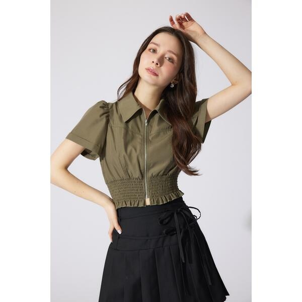 リエンダ(rienda)/ウエストシャーリングZIPブラウス