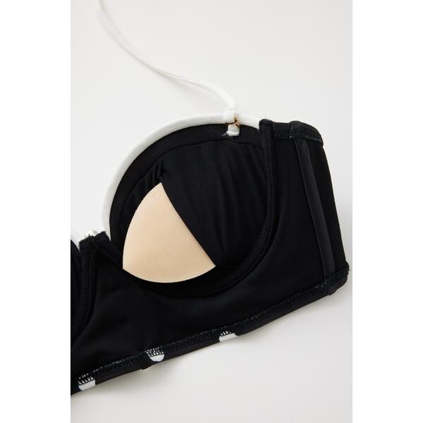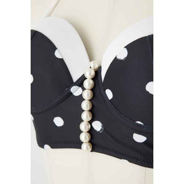 【腰のパールチェーンとレトロなバイカラーデザインが目を引くロマンティックなスウィムウエアがお目見え】■ポイントバストを下からプッシュアップし、綺麗な丸みを帯びたバストラインをメイクしてくれるriendaのバンドゥカップ型で作成。■ディテールハイウエストのショーツとビスチェのようなビキニのセットでウエスト周りとアンダーバストをしっかりカバーし腰位置を高く見せてスタイルアップ効果も◎パールチェーンは取り外し可能。ホルターも取り外し可能で2本のアジャスター付きフックがしっかりとホールドしてくれるので安心感もばっちりです。レトロ感たっぷりなポルカドットは手描き風にアレンジしたriendaオリジナルのマルチカラー。小物使いでシックにもモードにも使えるブラック。血色感をUPしてくれるベージュの3色展開です。■スタイリング大きめのシャツを羽織って大人エレガンスなビーチスタイルやカチューシャ・ヘアバンドを合わせてレトロ感を楽しむのも◎キャップでスポーティーに外してもモードに決まります。■生地透け感:なし裏 地:あり伸縮性:あり光沢感:なし厚 さ:あり■商品のお気に入り登録お気に入りアイテムの再入荷・在庫1点などの通知を受け取ることができます。[注意事項]※画像の商品はサンプルです。実際の商品と仕様、加工が若干異なる場合があります。※画像の商品は光の照射や角度、お使いのモニター環境により、実物と色味が異なる場合がございます。※着用、お取り扱いの際は、アテンションタグをご確認ください。