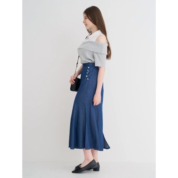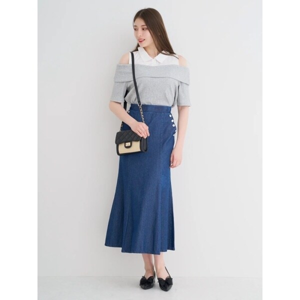 ・肩開きの肌見せがヘルシーな抜け感を演出してくれます。