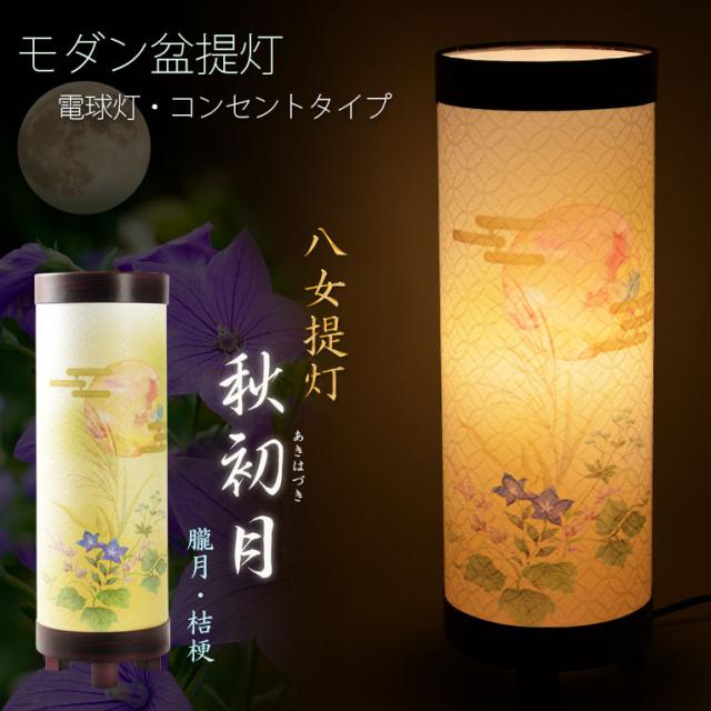 国産・お盆提灯【八女提灯 インテリア盆提灯:秋初月(あきはづき)朧月・桔梗 電球灯】モダン盆提灯 霊前灯 盆飾り 和照灯 新盆 初盆 お盆・お彼岸・盆棚・仏具 送料無料