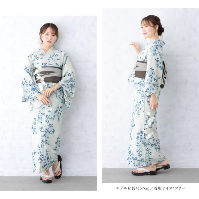 浴衣 セット レディース 浴衣セット 半幅帯 floro グレー 水色 花柄 涼しい おしゃれ かわいい 下駄 Sサイズ フリーサイズ 送料無料