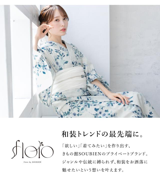 きもの館SOUBIENのプライベートブランド『floro by SOUBIEN』(フローロ)の女性用浴衣セットです。