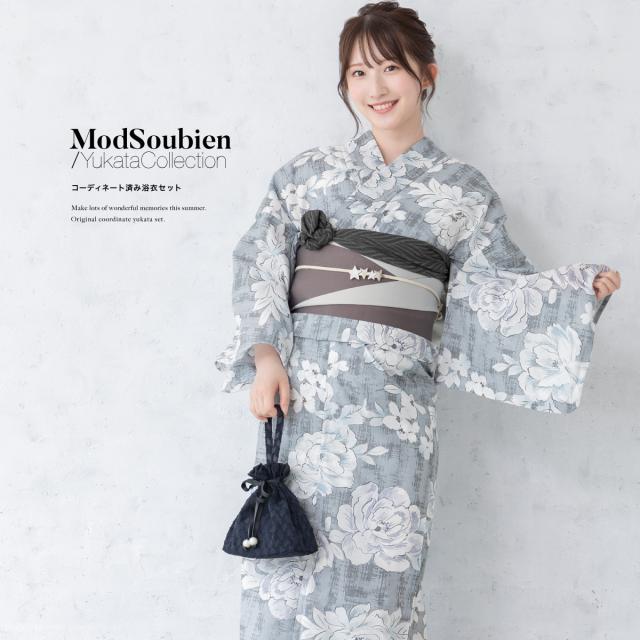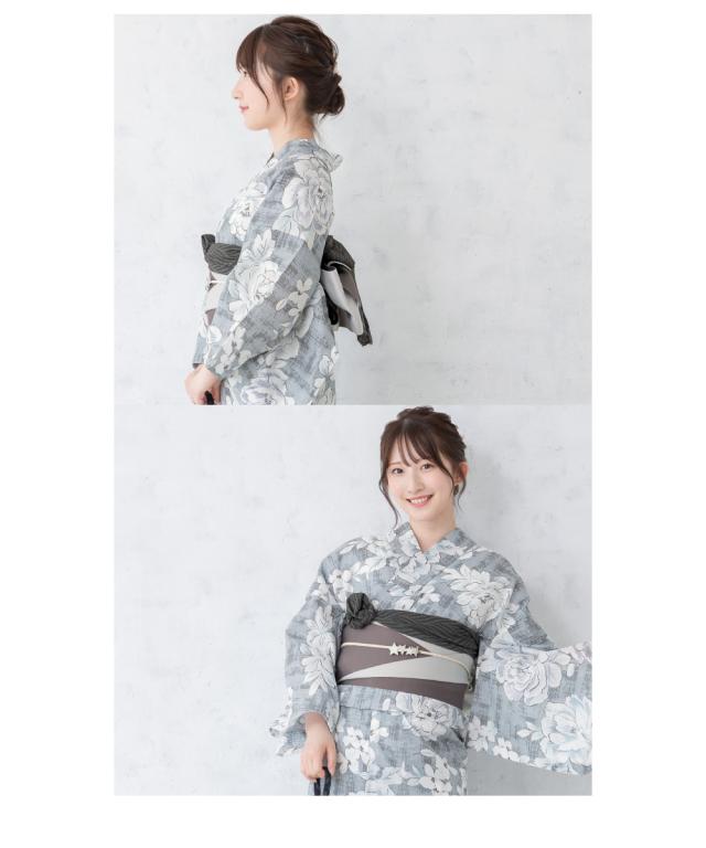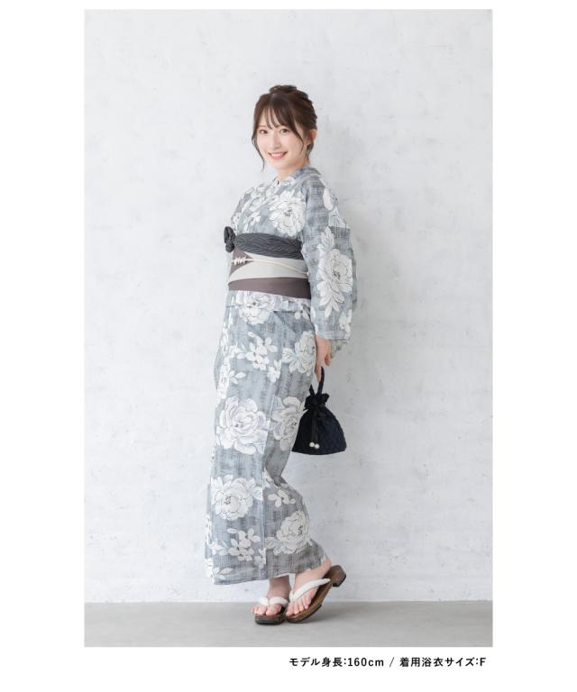 浴衣 セット レディース 浴衣セット 半幅帯 グレー 灰色 牡丹 花柄 コーディネート済み おしゃれ かわいい 簡単 涼しい レトロ モダン 夏 花火 下駄 フリーサイズ 送料無料