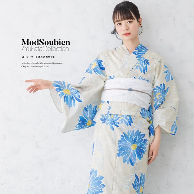 浴衣 セット レディース 浴衣セット 兵児帯 グレー ベージュ 青 白 花柄 コーディネート済み おしゃれ かわいい 簡単 涼しい レトロ モダン 夏 花火 下駄 フリーサイズ 送料無料