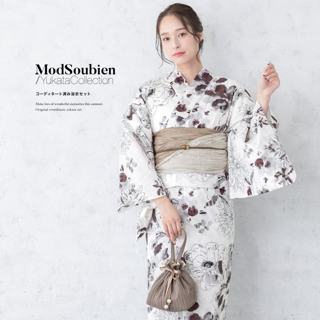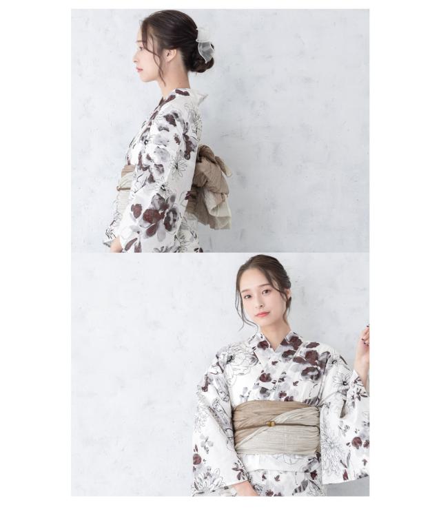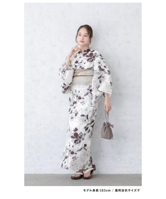 浴衣 セット レディース 浴衣セット 兵児帯 白 茶 灰色 菊 ガーベラ 花柄 コーディネート済み おしゃれ かわいい 簡単 涼しい レトロ モダン 夏 花火 下駄 フリーサイズ 送料無料