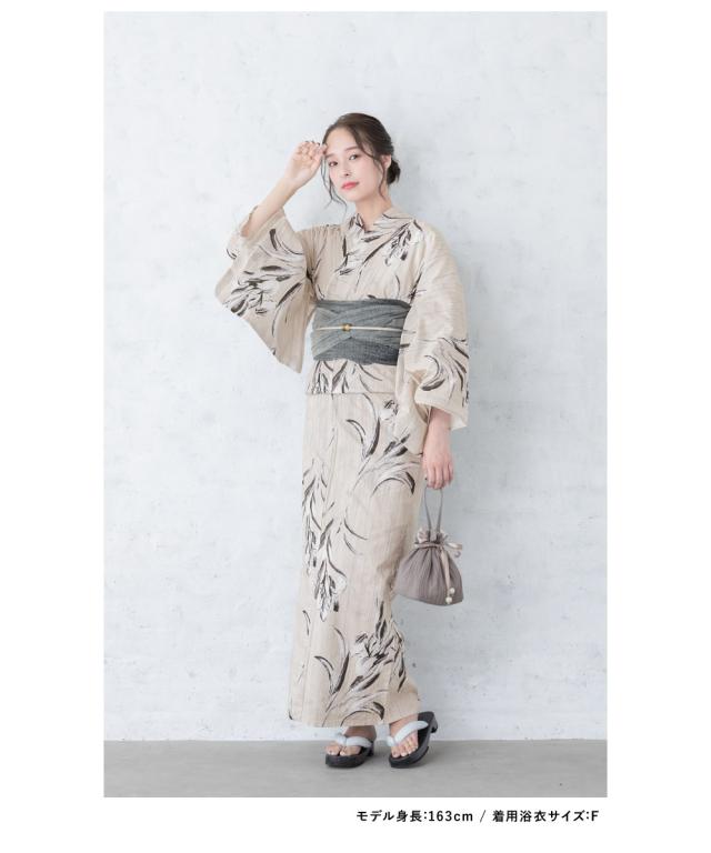 浴衣 セット レディース 浴衣セット 兵児帯 ベージュ 薄茶 黒 灰色 カトレア 花柄 コーディネート済み おしゃれ かわいい 簡単 涼しい 夏 花火 下駄 フリーサイズ 送料無料